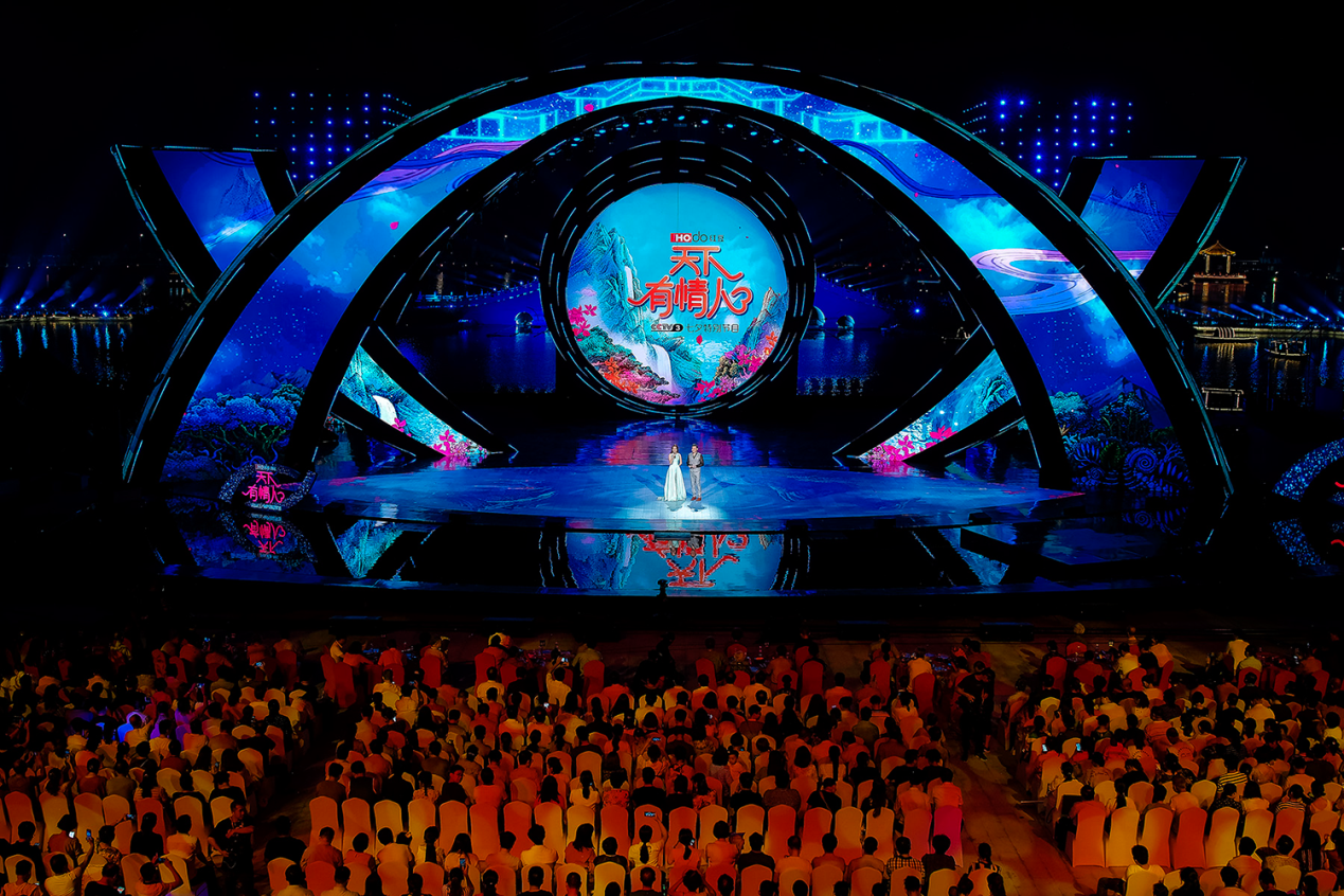 ? ? ? ? 在今年紅豆七夕節(jié)二十周年之際,這臺(tái)一貫保持高水準(zhǔn)制作的晚會(huì),不負(fù)眾望,再次走進(jìn)陜西西咸新區(qū)昆明池和江西新余仙女湖,進(jìn)行“雙城”實(shí)景錄制,將兩地秀美的自然風(fēng)光納入晚會(huì)舞美設(shè)計(jì)當(dāng)中,在歌曲、舞蹈、相聲等傳統(tǒng)晚會(huì)的框架外,輔以更多當(dāng)下新鮮的視聽元素,包括影視化拍攝、歌舞劇表演、直播帶貨等,將整場(chǎng)晚會(huì)用短片串聯(lián)起來(lái),以故事推動(dòng)晚會(huì)進(jìn)程,完美呈現(xiàn)“此時(shí) 醉良辰”、“此夕 最相思”、“此生 共相守”等頗具中國(guó)風(fēng)的三大篇章內(nèi)容。現(xiàn)場(chǎng)舞臺(tái)還將融入央視媒體線上發(fā)起的紅人舞動(dòng)挑戰(zhàn),并以虛擬與現(xiàn)實(shí)的時(shí)空交錯(cuò),再現(xiàn)大唐盛世等。