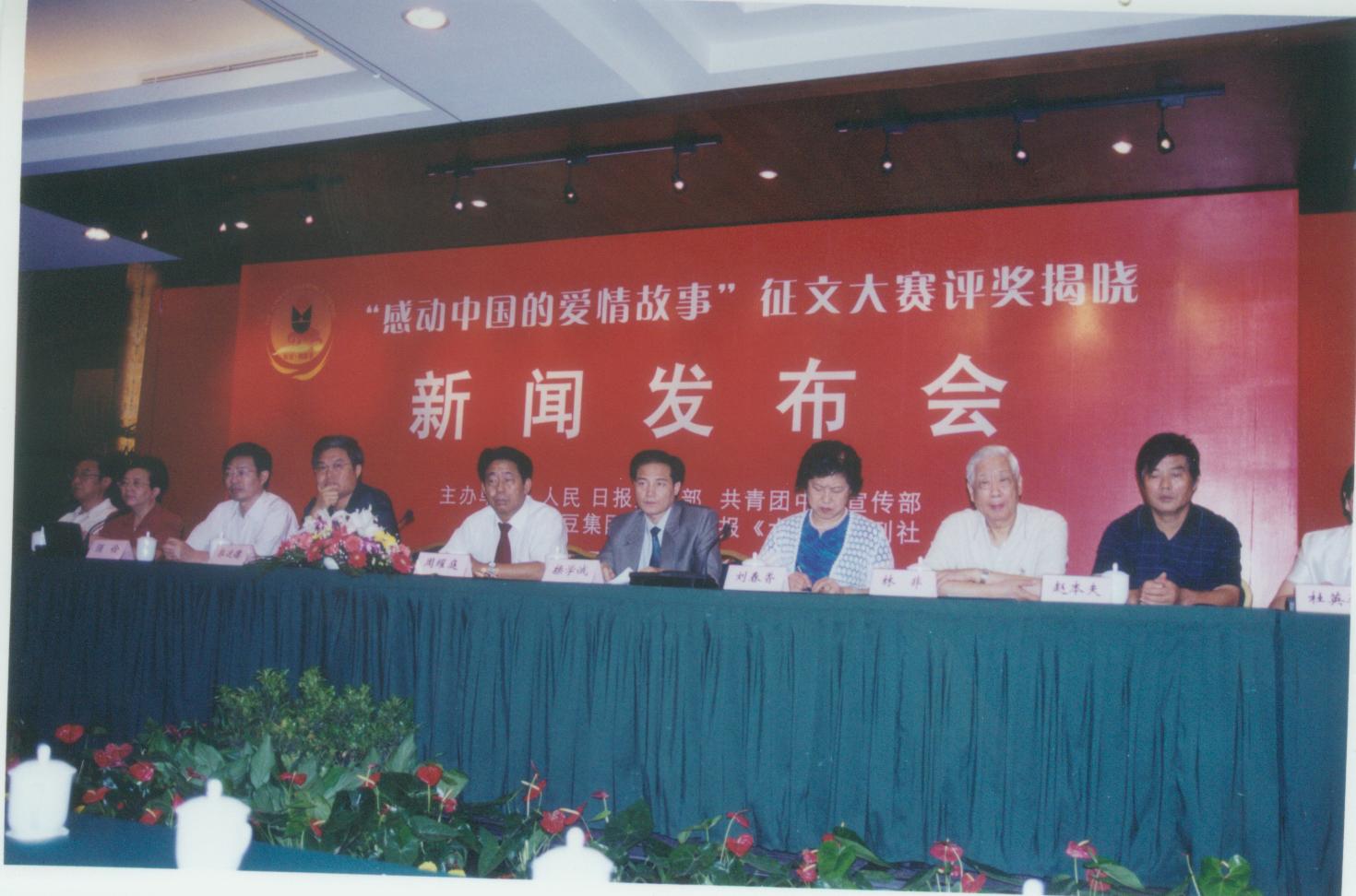 當(dāng)天下午,“中國民俗文化·紅豆相思節(jié)研討會(huì)”也在北京如期舉行。人民日?qǐng)?bào)文藝部主任郭運(yùn)德,中國民間文藝家協(xié)會(huì)副主席、秘書長(zhǎng)劉春香,共青團(tuán)中央宣傳部長(zhǎng)操學(xué)誠等多位民俗專家學(xué)者應(yīng)邀參加了這次研討會(huì)。 感動(dòng)中國的愛情故事征文大賽從5月到截止,已收到來自全國各地(含港、澳、臺(tái))的來稿近萬篇,來稿的取材既有歷史或現(xiàn)代名人浪漫曲折的愛情歷程,也有平凡真摯而感人的愛情故事。參賽者有工、農(nóng)、商、學(xué)、兵,也有國家公務(wù)員、記者和作家,年齡最大的82歲,最小的15歲。在這次大賽中,政界偉人周恩來,航天英雄楊利偉,人民的好公安局長(zhǎng)任長(zhǎng)霞等名人都成了作者的創(chuàng)作題材。