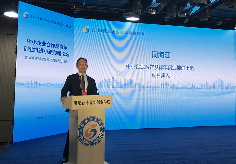 11月4-5日,2019兩岸企業(yè)家紫金山峰會在江蘇南京舉行。中共中央政治局常委、全國政協(xié)主席汪洋出席并發(fā)表演講。作為兩岸企業(yè)家峰會中小企業(yè)合作和青年創(chuàng)業(yè)推進(jìn)小組召集人的紅豆集團(tuán)董事局主席兼CEO周海江,在兩岸青年創(chuàng)業(yè)分享交流專題論壇上,鼓勵(lì)臺灣青年精英來大陸創(chuàng)業(yè),并分享了自己創(chuàng)業(yè)的故事。