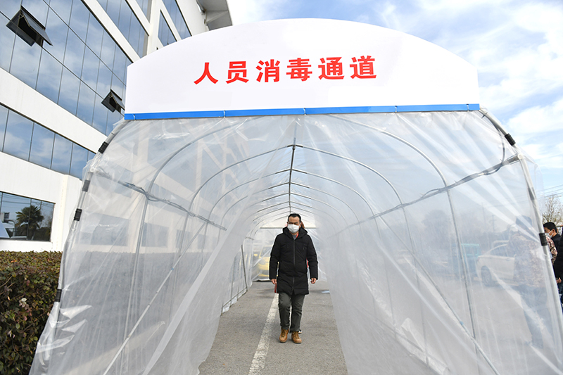 “為了確保工人安全和生產(chǎn)正常進行,我們嚴格遵守當(dāng)?shù)貜?fù)工要求,對所有復(fù)工的職工進行摸底調(diào)查,確保復(fù)工職工及家人沒有重點疫區(qū)人員接觸史。本地員工先復(fù)工,針對返回的外地員工,全部隔離觀察14天,再做相應(yīng)工作安排”紅豆集團相關(guān)負責(zé)人表示。記者看到,在紅豆集團廠區(qū)及生產(chǎn)車間,所有復(fù)工的職工均佩戴口罩,進出測量體溫;廠區(qū)、車間、食堂、宿舍等區(qū)域每天定時消毒;所有防疫物資均以準備充足,包括耳溫槍、洗手液、口罩、防護服、84消毒液、酒精等,千方百計保護好每一位職工的平安健康。