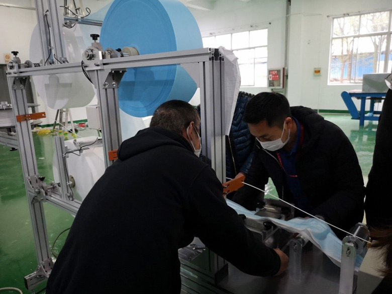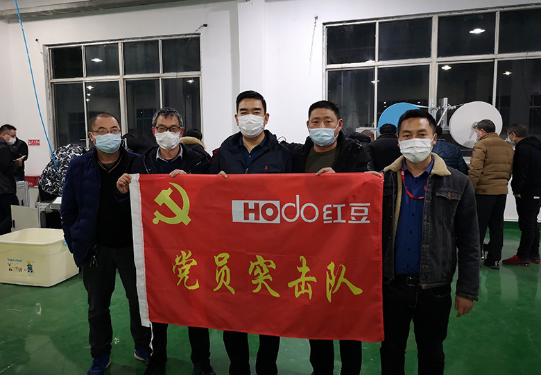 今天隨著兩套全自動口罩生產(chǎn)設(shè)備運(yùn)到工廠,紅豆又將新添兩條口罩生產(chǎn)流水線。紅豆口罩黨員突擊隊一馬當(dāng)先,在隊長馮振標(biāo)帶領(lǐng)下,一呼百應(yīng),董建剛、戴宏、田勇、蔣國敏等黨員干部沖在前,犧牲周末休息時間,加班加點(diǎn)連夜安裝調(diào)試口罩生產(chǎn)流水線設(shè)備。