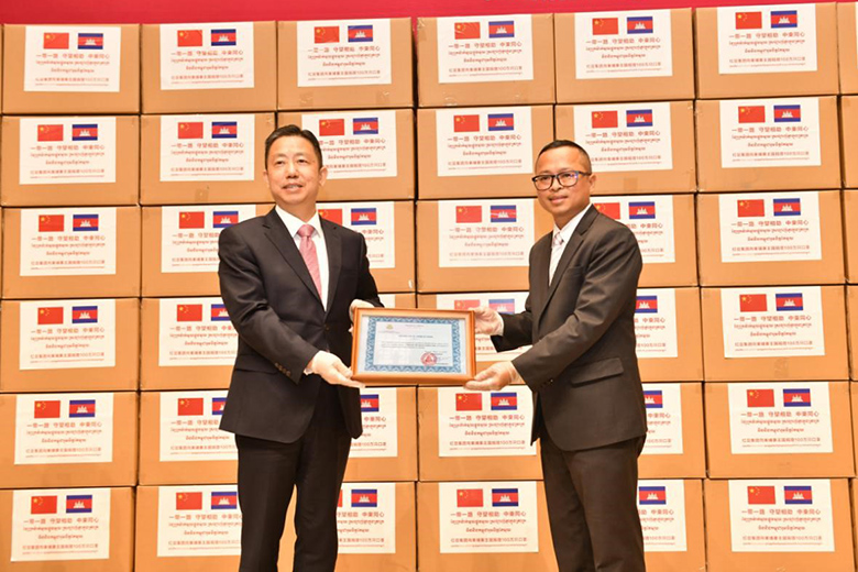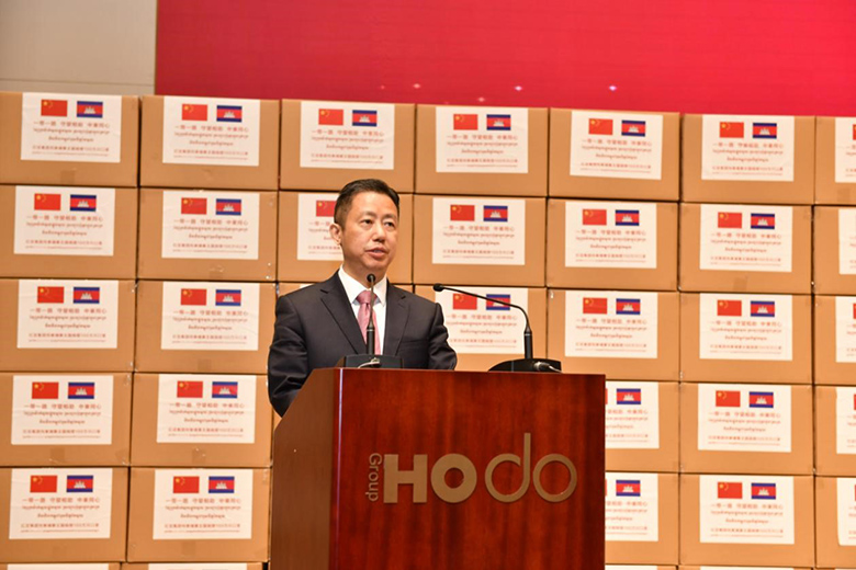 周海江在儀式上表示,在習(xí)近平總書記的親自指揮、親自部署下,我們舉國上下同心抗疫,經(jīng)過60多天的艱苦奮斗取得階段性勝利。而在中國抗疫斗爭初期最艱難時刻,洪森首相不顧危險,親赴北京,雪中送炭,支持中國抗疫,體現(xiàn)了危難之際中柬兩國的深厚兄弟情誼。多年來,在洪森首相的英明領(lǐng)導(dǎo)下,柬埔寨經(jīng)濟發(fā)展迅猛,現(xiàn)在柬埔寨疫情防控進入攻堅期,作為在柬投資的中國龍頭企業(yè),紅豆集團用實際行動誠摯表達中國人民對洪森首相英明領(lǐng)導(dǎo)的一份敬意。