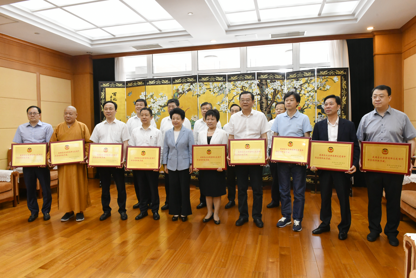 6月17日,紅豆集團及集團董事局主席兼CEO、省政協(xié)常委周海江因在抗擊新冠肺炎疫情中堅持黨建引領、積極參與戰(zhàn)“疫”、踐行使命擔當、作出突出貢獻,受到政協(xié)江蘇省委員會表彰。省政協(xié)主席黃莉新為受表彰集體和個人頒發(fā)榮譽牌。