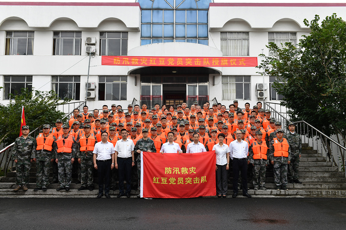 黨有號(hào)召,紅豆必應(yīng);國有需要,紅豆必有為。7月19日,紅豆黨委第一時(shí)間組織學(xué)習(xí)了中央組織部文件,并作出了成立防汛救災(zāi)黨員突擊隊(duì)的決定。7月20日,紅豆集團(tuán)人武部第一時(shí)間舉行防汛救災(zāi)黨員突擊隊(duì)授旗儀式,集團(tuán)黨委書記周海江向突擊隊(duì)授旗,100名黨員突擊隊(duì)向黨旗莊嚴(yán)宣誓。