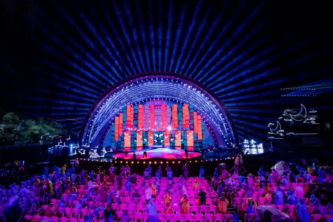 2017年,《天下有情人》七夕晚會(huì)首次從室內(nèi)來(lái)到戶外,舞臺(tái)設(shè)在了江西新余仙女湖,這里是東晉古籍《搜神記》中“七仙女下凡”傳說(shuō)和“中國(guó)七夕情人節(jié)”的發(fā)源地。在那場(chǎng)堪稱視覺(jué)盛宴的晚會(huì)上,大型實(shí)景舞臺(tái),加上酷炫的現(xiàn)代舞臺(tái)技術(shù),形成了亦真亦幻的仙境效果,讓人為之驚嘆,晚會(huì)極具古典氣息的舞美設(shè)計(jì)與豐富的舞臺(tái)視覺(jué)效果,真正呈現(xiàn)出了一幅極具中國(guó)傳統(tǒng)唯美浪漫情懷的畫(huà)卷。