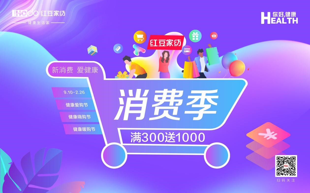 金秋如錦,今年適逢國慶、中秋“雙節(jié)合一”。在“雙節(jié)”到來之際,紅豆家紡為進一步激活大眾健康睡眠消費潛力,于2020年9月10日舉辦 “新消費.愛健康——紅豆家紡消費季”主題系列活動,讓用戶在“紅豆家紡消費季”多買多送,一次買個夠,活動期間推出滿300元送1000元券包,以前端企業(yè)讓利,后端鏈接用戶,為用戶提供有價值的消費福利,持續(xù)為用戶輸出健康睡眠品牌理念。