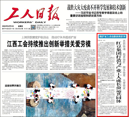 作為唯一入選全國產(chǎn)改項目試點(diǎn)的民企,江蘇紅豆集團(tuán)積極探索在非公企業(yè)開展黨建工作的方式方法,出臺《黨建帶工建推進(jìn)產(chǎn)業(yè)工人隊伍建設(shè)改革試點(diǎn)工作方案》,全面實施“四鑄四有”工程,著力改革創(chuàng)新紡織行業(yè)產(chǎn)業(yè)工人隊伍建設(shè)體制機(jī)制、方式方法,為集團(tuán)產(chǎn)業(yè)強(qiáng)企提供動力和保障,為全國產(chǎn)業(yè)工人隊伍建設(shè)改革探索“紅豆樣本”。