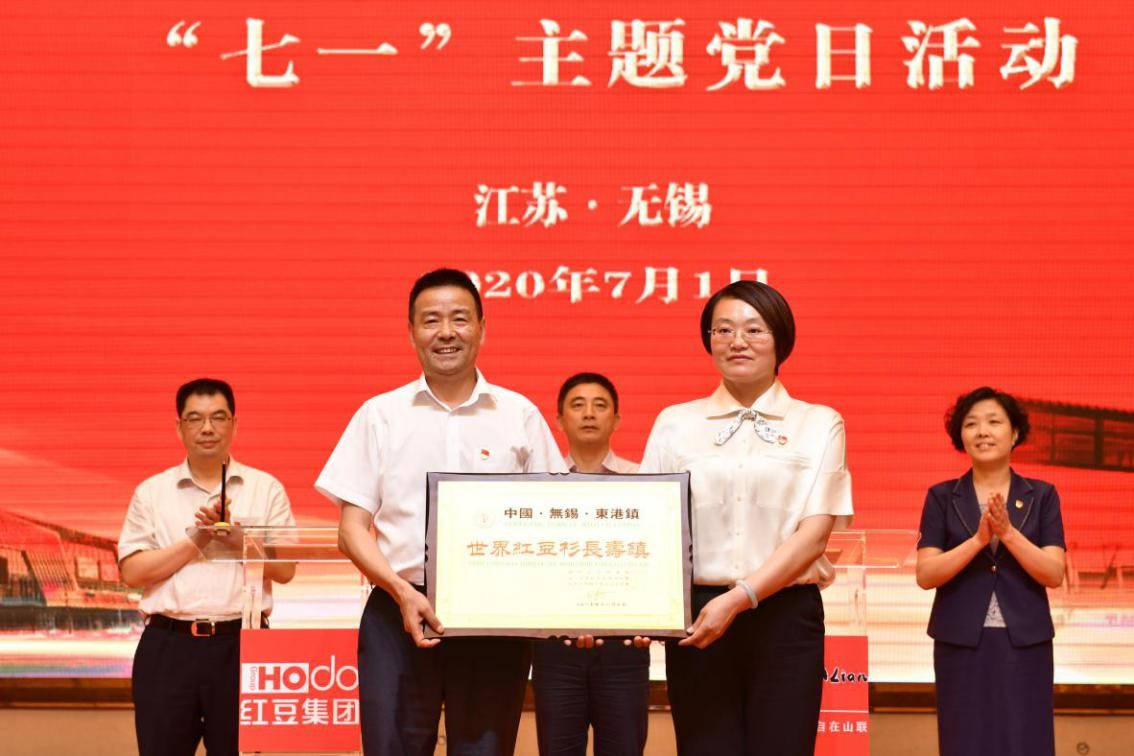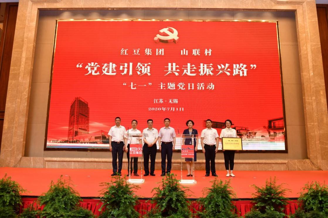村企聯(lián)姻一家親,攜手共進助振興。 7月1日下午,紅豆集團、山聯(lián)村“黨建引領(lǐng)共走振興路”“七一”主題黨日活動在紅豆杉莊舉行?;顒由?,紅豆集團與山聯(lián)村深化結(jié)對共建正式簽約;為推動山聯(lián)村休閑、度假、康養(yǎng)產(chǎn)業(yè)發(fā)展,帶動百姓致富,紅豆集團還將“世界紅豆杉長壽鎮(zhèn)”品牌使用權(quán)授予山聯(lián)村。